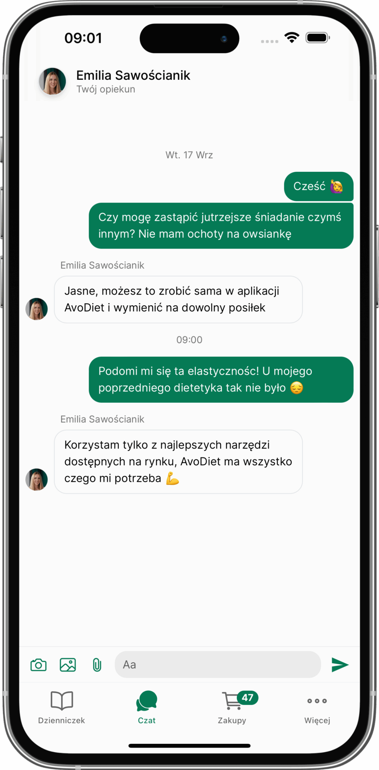 Od dłuższego czasu korzystam z programu Avodiet i według mnie jest to najlepszy program na rynku. Największym plusem jest to, że program jest stale rozwijany, co chwilę pojawiają się nowe funkcje, które nie tylko ułatwiają pracę dietetyków, ale także zachęcają pacjentów do korzystania z usług dietetycznych. Nasi pacjenci najbardziej zachwalają aplikację mobilną i możliwość wymieniania potraw.